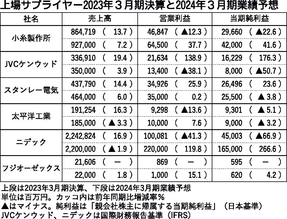 〈上場サプライヤー2023年3月期決算と2024年3月期業績予想〉(5/1付)