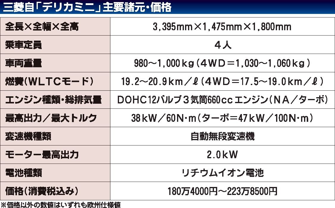 三菱自動車は、アウトドアでの使用を意識した新型スーパーハイトワゴン「デリカミニ」を5月25日に発売する。現行モデルは「eKクロススペース」の車名で展開しているが、今回、三菱車として認知度のある「デリカ」の車名を採用するとともに、悪路走破性...