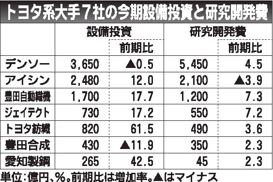 トヨタ自動車系の大手部品メーカーが電動車の研究開発や設備投資を急ぐ。デンソーはパワー半導体、アイシンは「eアクスル」に重点投資する。トヨタはこのほど、2030年までに電気自動車(EV)関連で5兆円を投資する方針を明らかにした。前回発表から...