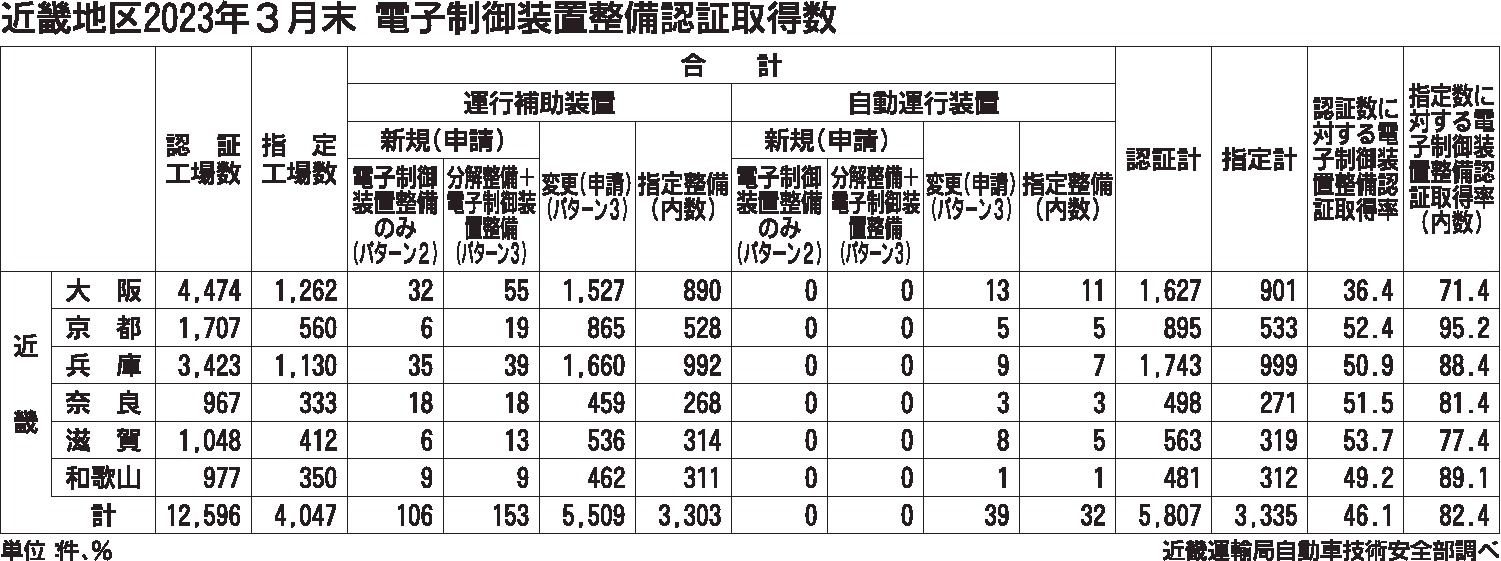 近畿地区3月末、電子制御装置整備認証 取得数は伸び悩み23%増の5807件