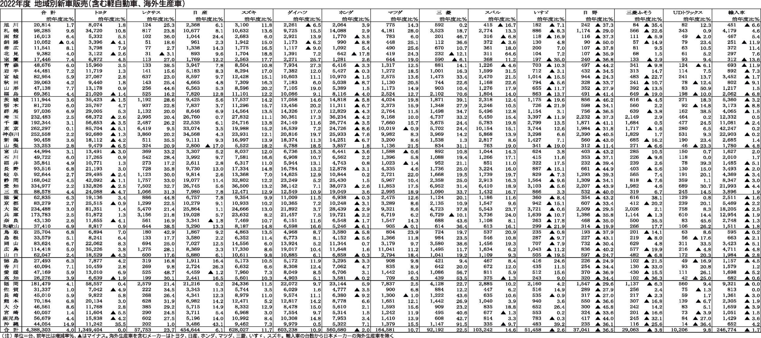 〈2022年度 地域別新車販売(含む軽自動車、海外生産車)〉