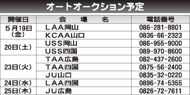 〈オートオークション予定〉中四国地区 2023/5/19~25