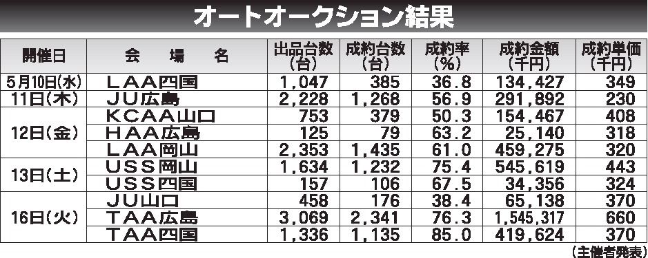 〈オートオークション結果〉 中四国地区 2023/5/10~16