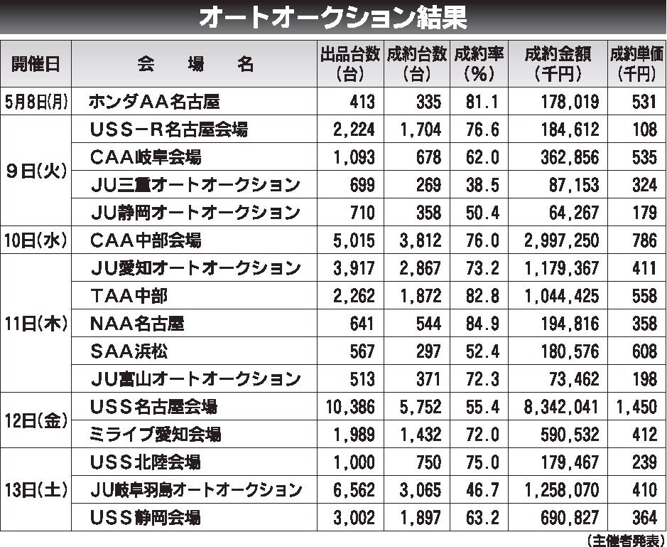 〈オートオークション結果〉中部地区 2023/5/8~13
