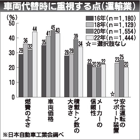 燃料費の高騰が、トラック事業者の省エネルギー志向を加速させている。軽油の店頭小売価格は2020年5月に全国平均で1㍑当たり110円を切っていたが、これ以降は一転して上昇。政府は22年に入り、「燃料油価格激変緩和対策事業」を発動させ、価格抑...