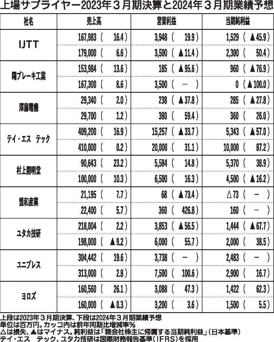 〈上場サプライヤー2023年3月期決算と2024年3月期業績予想〉(5/22付)