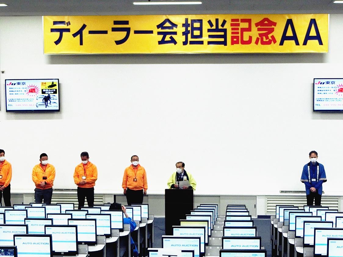 JU東京(萩田典雄理事長)は、「ディーラー会担当記念AA」を開催した=写真。全体の出品台数は1814台、成約率は64・0%だった。 今回のAAでは出品台数のうち、ディーラー会が688台を集めた。セレモニーでディーラー会の石井松夫会長は「前...