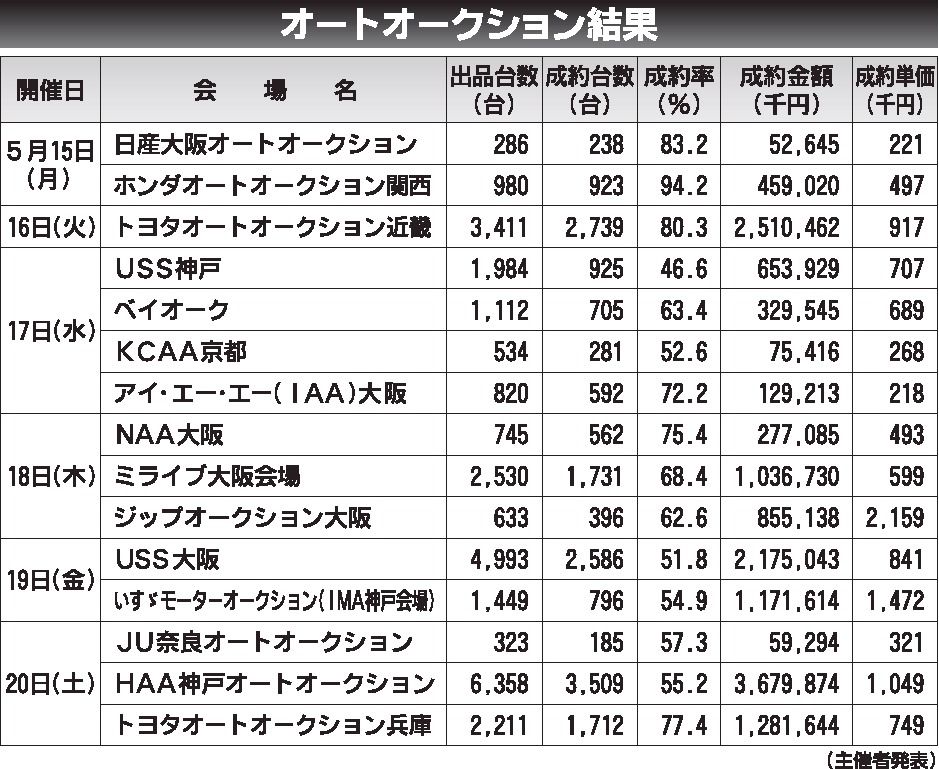 〈オートオークション結果〉近畿地区 2023/5/15~20