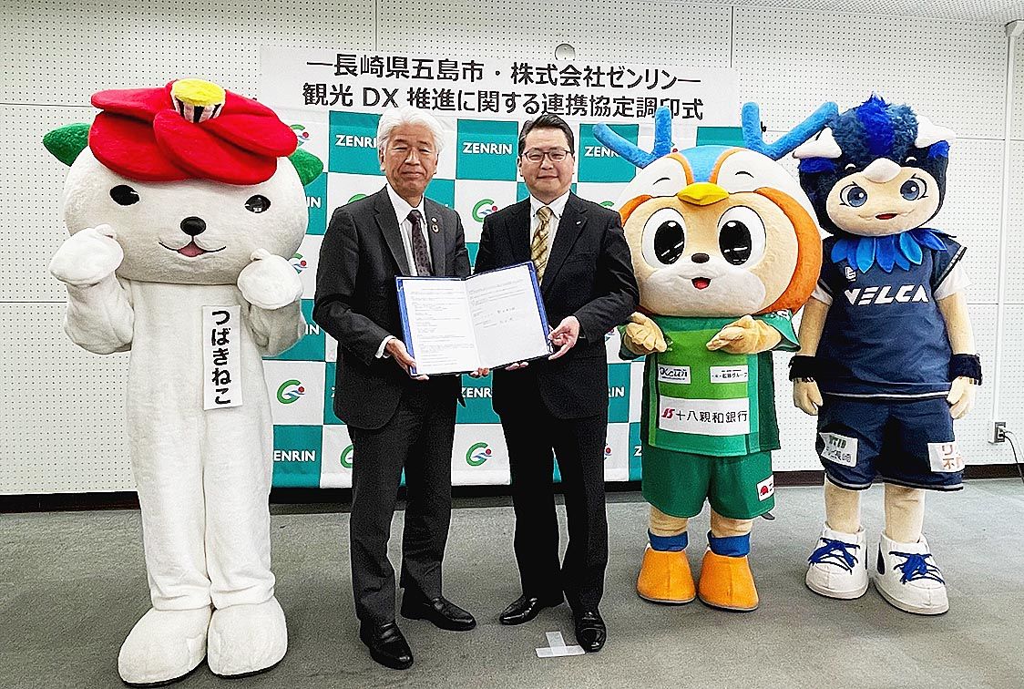 【長崎】ゼンリンは、観光DX(デジタルトランスフォーメーション)推進による地域活性化に向けて、五島市と連携協定を締結した。ゼンリンの松山稔執行役員ビジネス企画室長、五島市の野口市太郎市長らが出席し、16日に締結式があった=写真。 この協定...