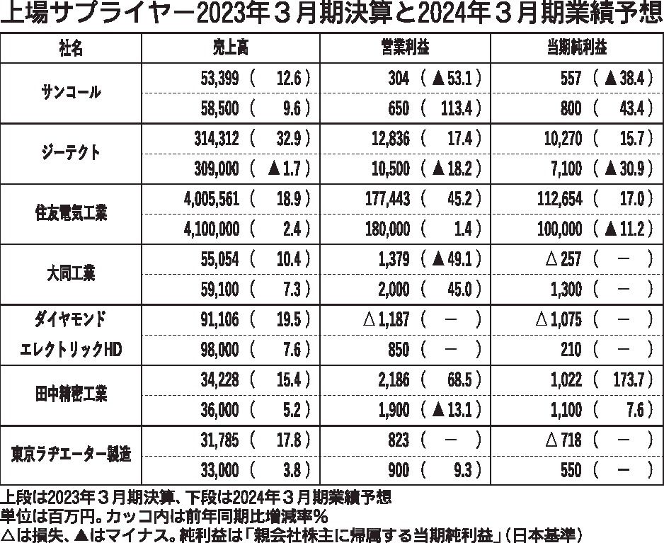 〈上場サプライヤー2023年3月期決算と2024年3月期業績予想〉(5/24付)