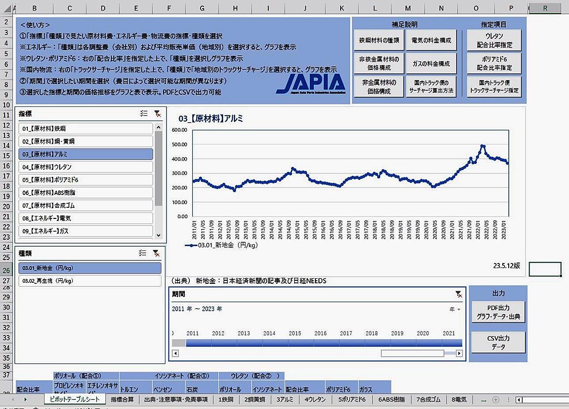 日本自動車部品工業会(部工会、有馬浩二会長)は、自動車部品製造に関する原材料やエネルギー、物流などの市況を確認できる「原材料・エネルギー等の価格転嫁促進ツール」をウェブサイトで公開した。市況データをもとに納入先との価格交渉を円滑に進め、取...