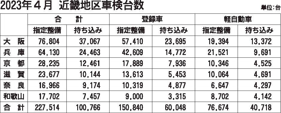 近畿地区4月車検、9ヵ月連続で前年超え 3.9%増の32万8280台