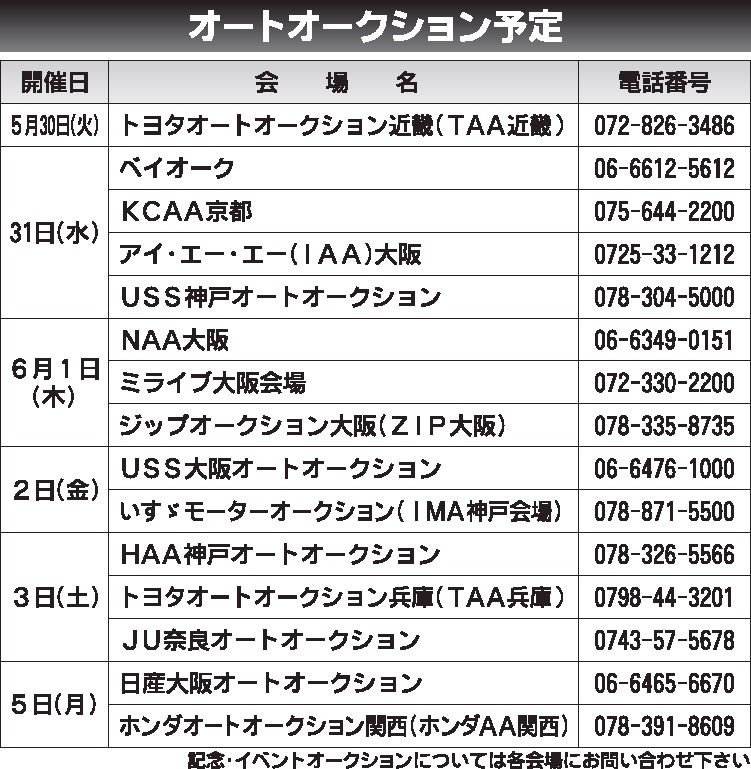 〈オートオークション予定〉近畿地区 2023/5/30~6/5