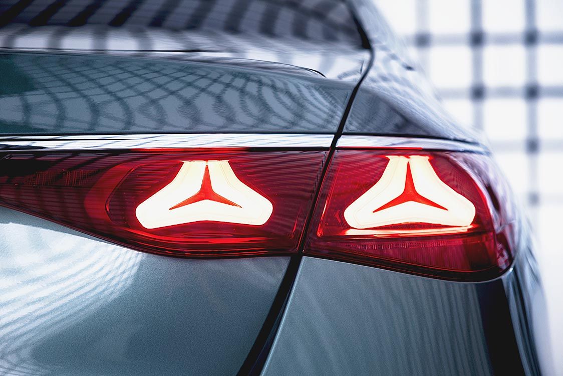 フロントグリルは、光沢の強い黒色のベースを活用して同社EV「EQ」シリーズとデザインの共通性を持たせた。クロームの縁取りを浮かび上がらせる照明をオプション設定した。テールランプには同社のブランドシンボル「スリー・ポインテッド・スター」が浮かび上がる。