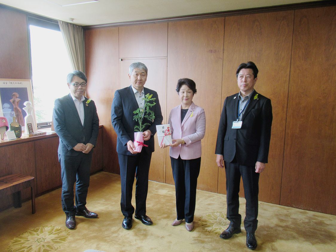 山形トヨペットがキャンペーン 県にスギの苗木を寄贈