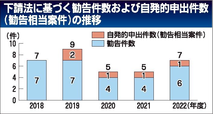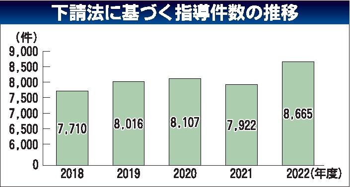 2022年度の下請法(下請代金支払遅延等防止法)に基づく親事業者への勧告(公表)・指導件数が過去最多の8671件に上った。公正取引委員会は、23年度の重点業種として自動車産業(輸送用機械器具製造業)も含めた5業種を選び、取引の適正化を強力...