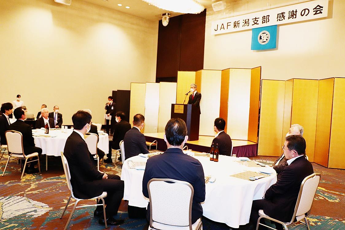 【新潟】日本自動車連盟(JAF)新潟支部(町田一越支部長)は、「2023年度JAF新潟支部感謝の会」を新潟市内のホテルで開催した=写真。同支部会員である県内自動車販売会社の代表者などが多数出席した。 同支部では、会員保有に重点をおいた取り...