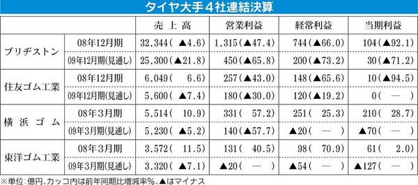 タイヤメーカーにも景気後退の波―大手4社軒並み減益