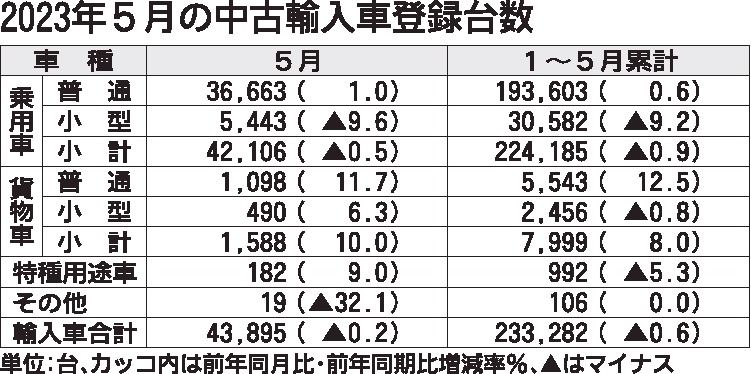 2023年5月の中古輸入車登録、0.2%減の4万3895台 2カ月連続のマイナス