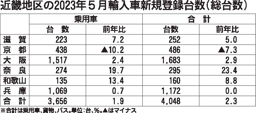 日本自動車輸入組合(JAIA)の発表によると、5月の近畿地区の輸入車新規登録台数(外国メーカー車と日本メーカー車)は前年同月比2・3%増の4048台と、5カ月ぶりに前年を上回った。生産台数の回復に伴う車両供給量の増加により、外国メーカー車...