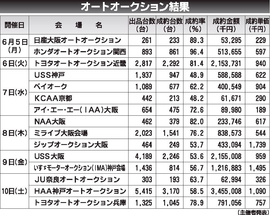 〈オートオークション結果〉近畿地区 2023/6/5~10