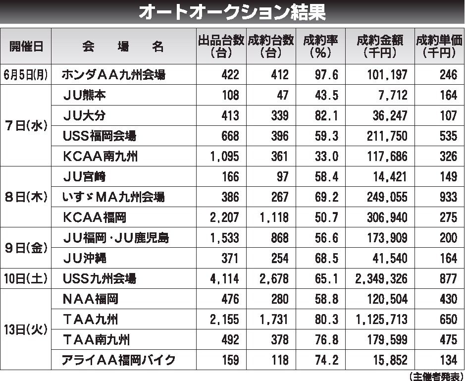 〈オートオークション結果〉九州地区 2023/6/5~13