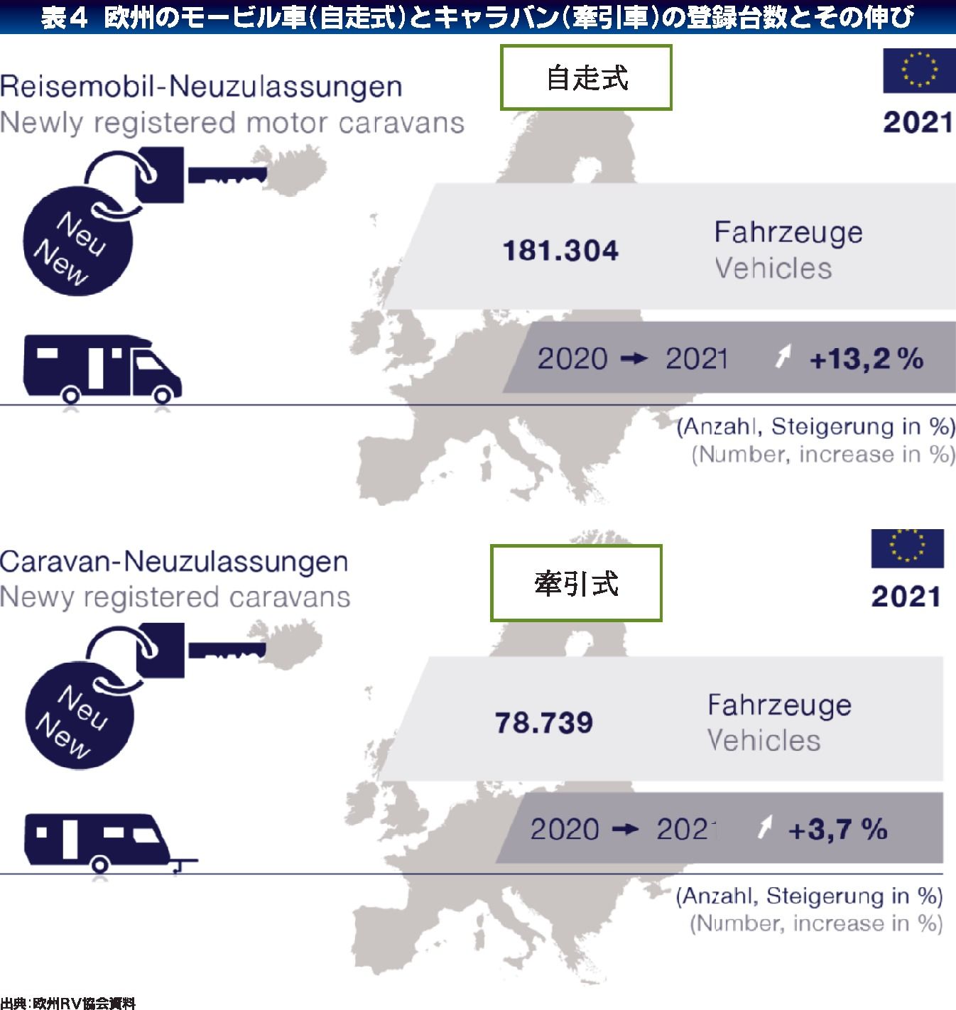 キャンピングカー市場が世界的に伸びている。近年、東京をはじとした大都市で「キャンピングカー・ショー」の展示会が頻繁に開催されるほか、欧米のRV協会発表の統計からみても、そのことがうかがえる。今回は視点を変えて、キャンピングカー市場の特徴を...