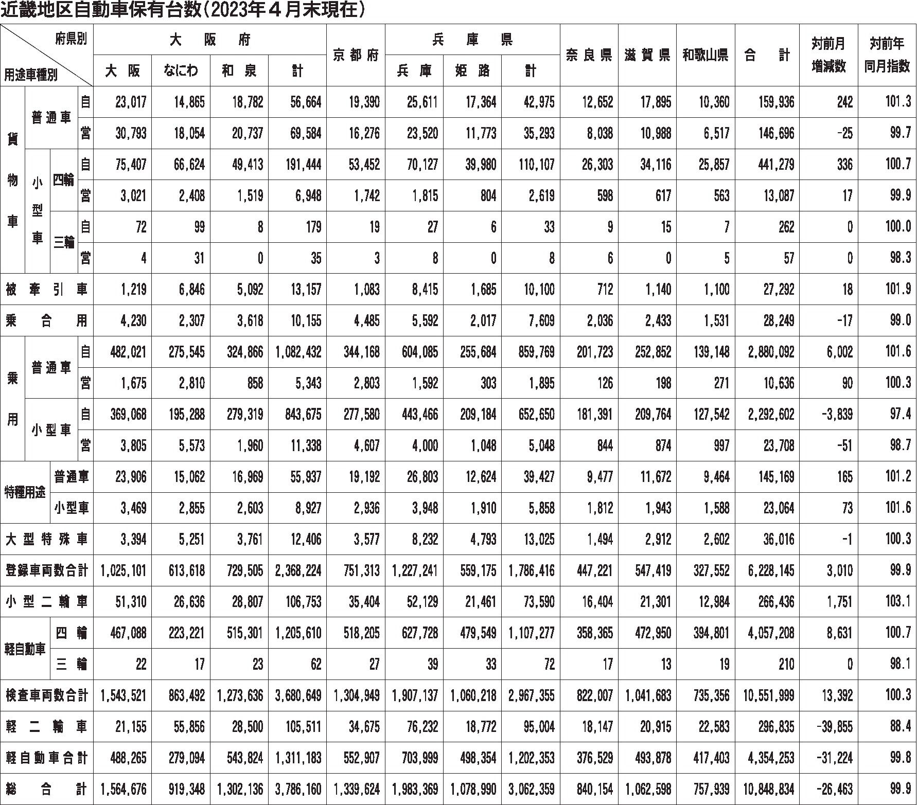 〈近畿地区自動車保有台数(2023年4月末現在)〉