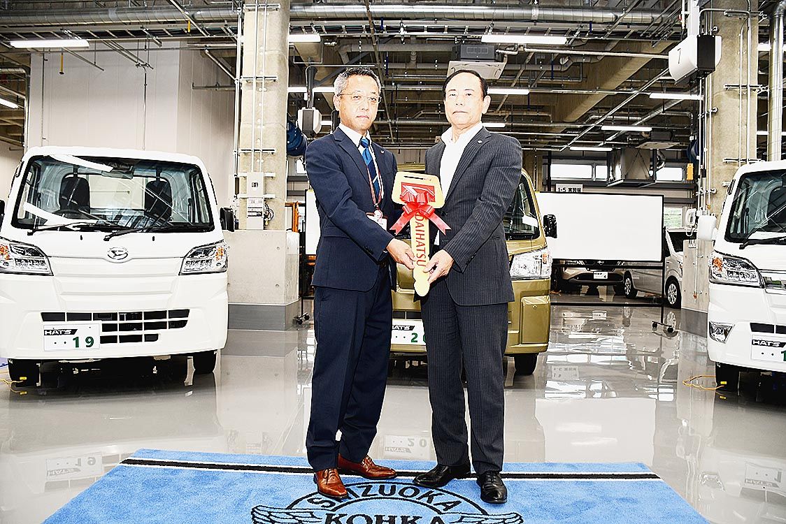 【静岡】静岡ダイハツ(井上和宏社長)は、浜松工科自動車大学校(岡部剛校長、浜松市中区)にハイゼットトラック3台を寄贈した。同校は、軽トラックの構造や運転支援機能に関する技術、整備などの学習に活用する。 9日に同校で執り行った寄贈式には、同...
