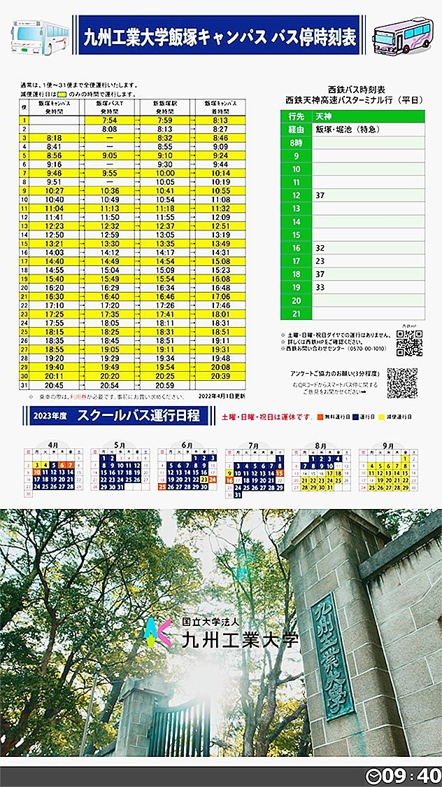 物流システムや交通情報システムなどを手掛けるYEデジタル(玉井裕治社長、北九州市小倉北区)は、九州工業大学が運営するスクールバスのバス停にサイネージで情報を表示する「スマートバス停」を設置し、学生、大学職員らの利便性を検証する実証実験を西...