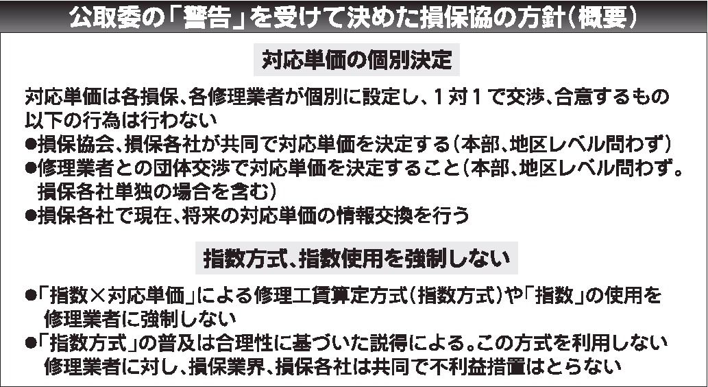 日本自動車車体整備協同組合連合会(日車協連、小倉龍一会長)が「指数対応単価」の見直しについて損害保険各社と団体交渉に入ることを決めた背景には、団体交渉が法的に可能であるということを公正取引委員会に確認できたことがある。ただ、損保各社や日本...