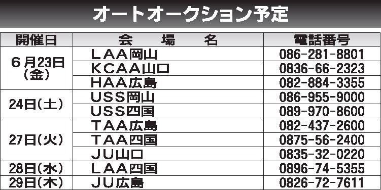 〈オートオークション予定〉中四国地区 2023/6/23~29