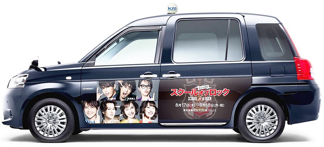 タクシー配車アプリのS.RIDE(エスライド、西浦賢治社長、東京都港区)と国際自動車(石井仁社長、同)などの4社は、ミュージカル「スクールオブロック」(西川貴教、柿澤勇人主演)仕様に装飾したタクシーの特別車を7月17日から9月18日まで東京23区内で11台走行させると発表した。国際自動車のトヨタ「JPNタクシー」に主要キャストを描いたラッピングを施す。さらに8月の観劇とタクシー送迎をセットにしたチケットを販売するなど話題を喚起し、公演の集客を支援する。