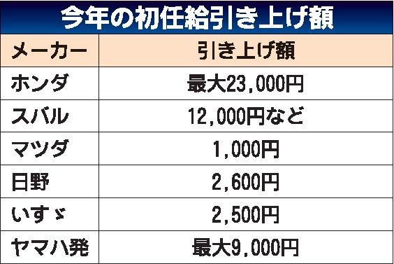 自動車メーカー各社が初任給の引き上げ幅を増やしている。今年の春闘では、組合側の要求に対し11社がそろって満額回答し、初任給も引き上げた。賃上げ総額が1万9千円のホンダと、1万3400円のヤマハ発動機は、大幅に初任給を引き上げた。物価上昇へ...
