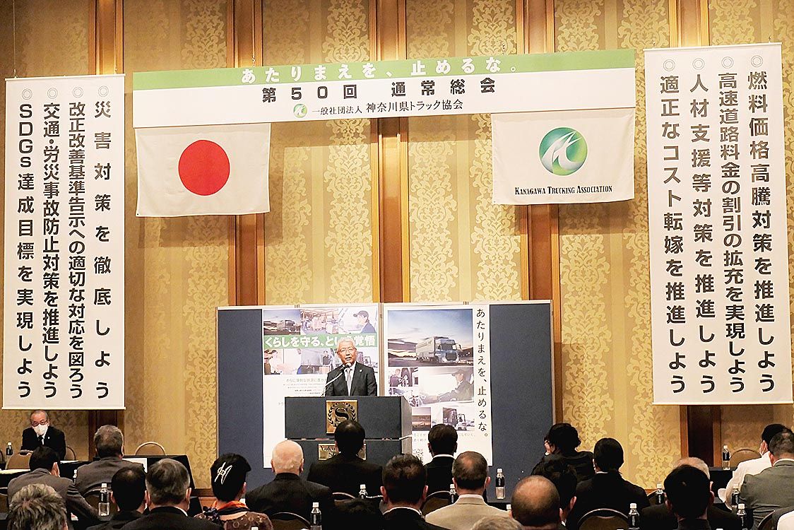 【横浜】神奈川県トラック協会(吉田修一会長)は、横浜市内のホテルで「第50回通常総会」を開催した=写真。制限を設けない形での総会の開催は4年ぶり。令和4年度の事業報告と決算、令和5年度の事業計画案と予算案などを審議し、原案通り可決された。...