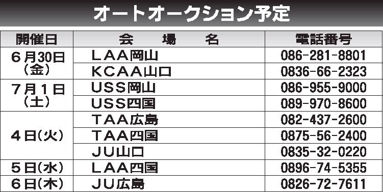 〈オートオークション予定〉中四国地区 2023/6/30~7/6