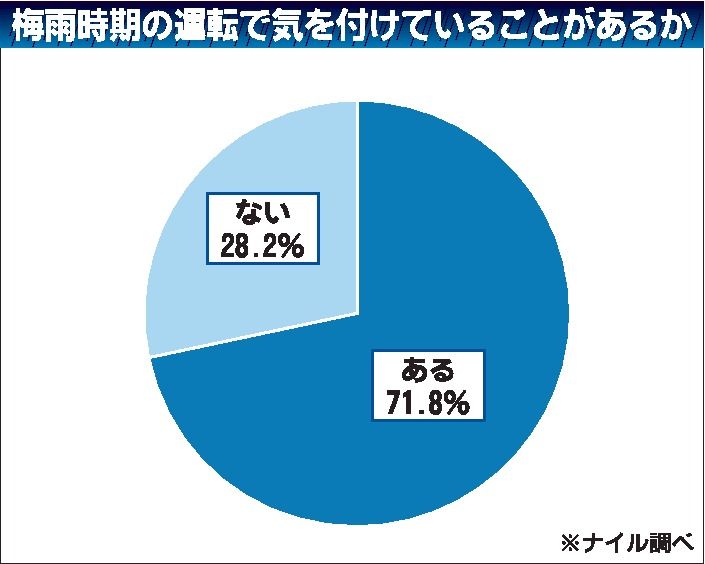 個人向けリースを手掛けるナイル(高橋飛翔社長、東京都品川区)が行った調査によると、梅雨の時期の運転に気を付けているドライバーが7割以上に上ることが分かった。雨天時は視界不良に加え、路面状況も悪化し、交通事故の危険性が高くなる。こうしたリス...