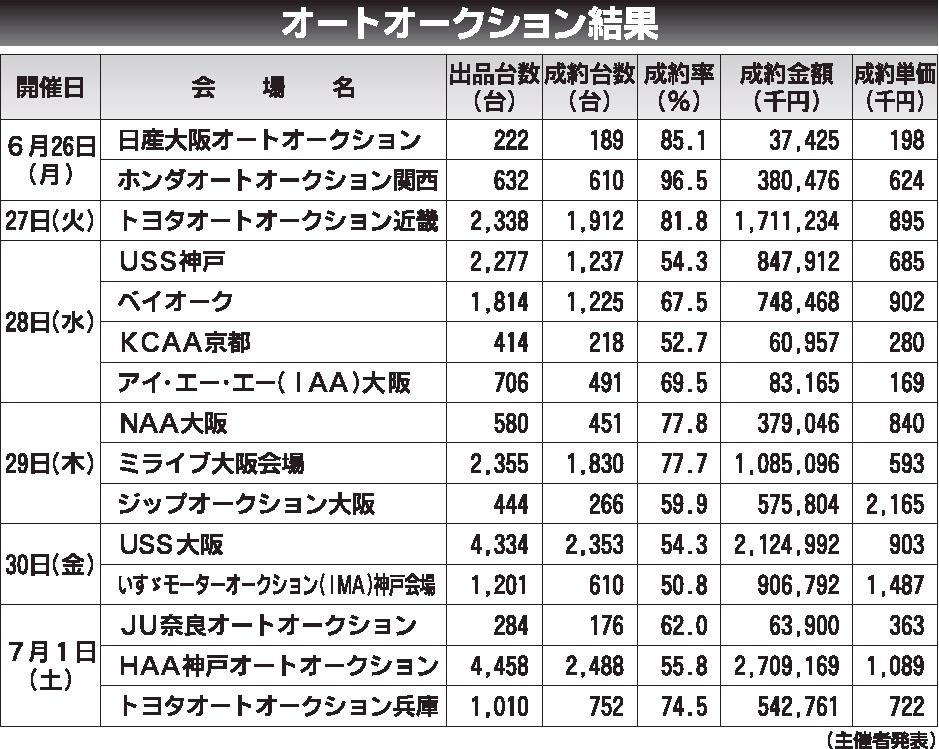 〈オートオークション結果〉近畿地区 2023/6/26~7/1