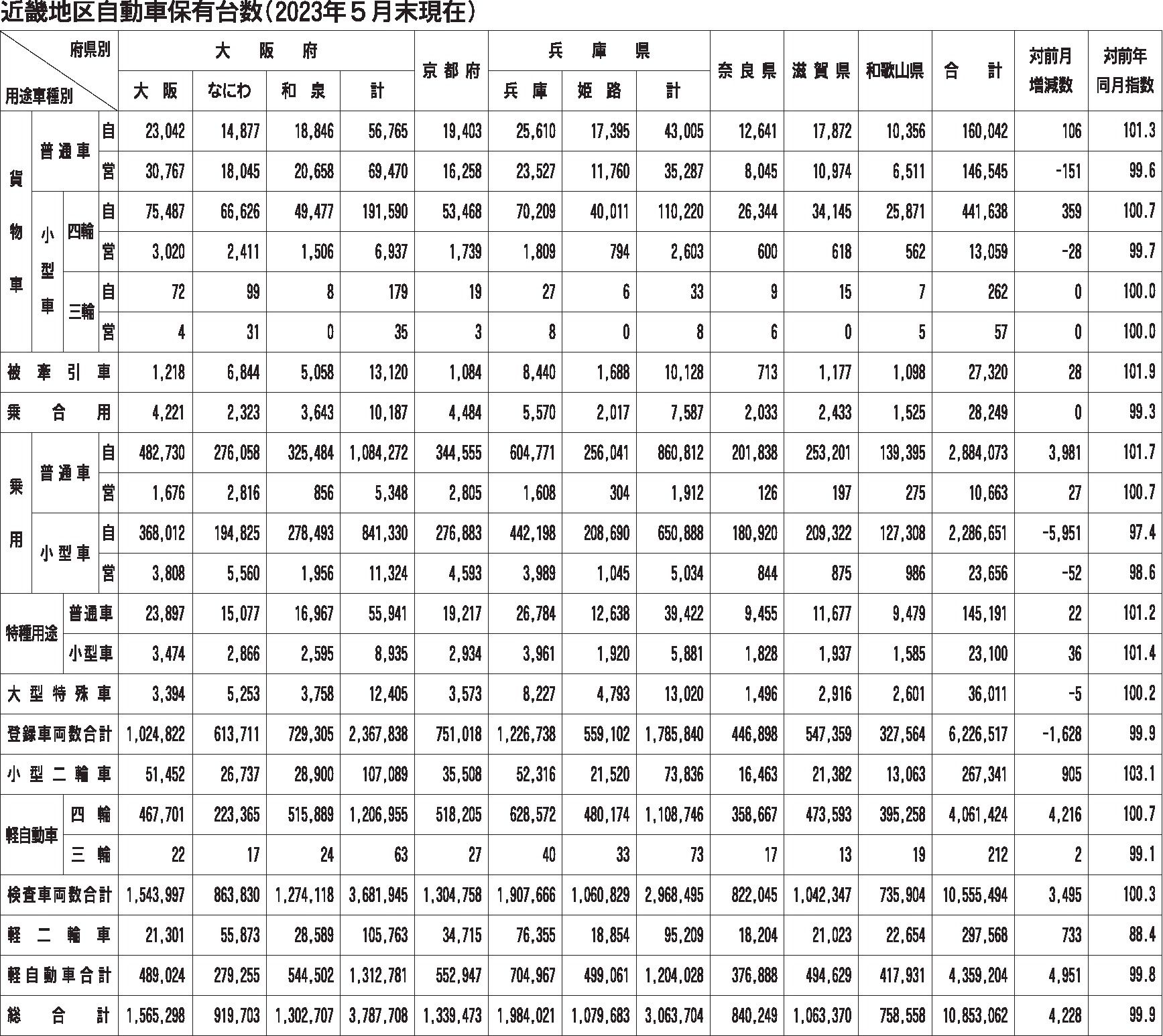 〈近畿地区自動車保有台数(2023年5月末現在)〉