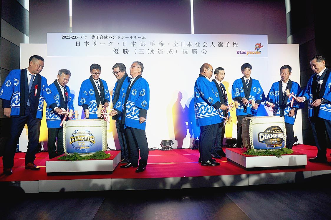 豊田合成は、同社のハンドボールチーム「ブルーファルコン」が日本リーグ、日本選手権、全日本社会人選手権の三冠を達成したことを受け、豊田合成記念体育館「エントリオ」(愛知県稲沢市)で祝勝会を開いた。田中茂監督や選手をはじめ、行政関係者や同社役...