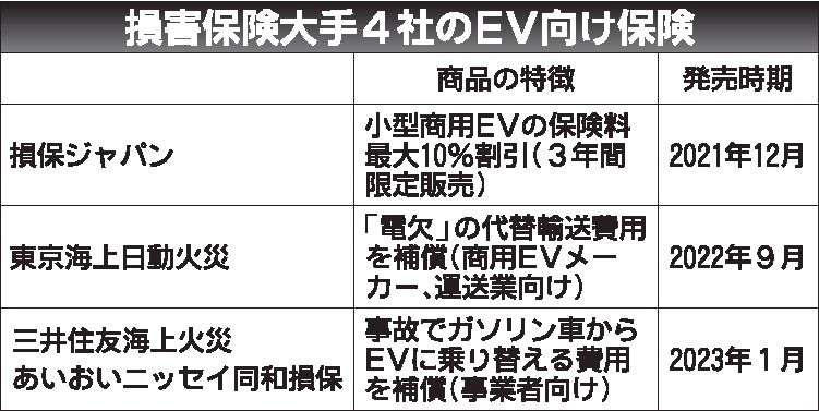 損害保険大手4社は、電気自動車(EV)向けの自動車保険で法人客の開拓に乗り出している。EV向け保険は2023年にかけて商品が出そろっており、すべてが法人向けとなっている。国内市場のEV化は、1日当たりの走行距離や稼働時間を見込みやすい商用...