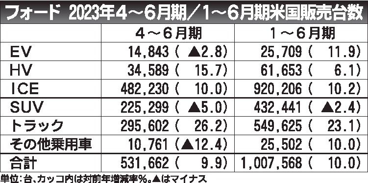 1~6月期はトラックの安定した拡販によって2桁増を確保した。EVもピックアップトラック「F150ライトニング」が順調で総台数が2桁増加した。
