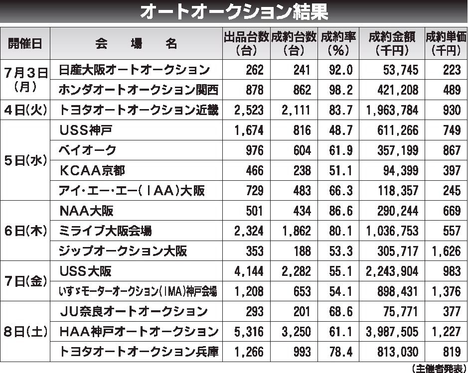 〈オートオークション結果〉近畿地区 2023/7/3~8