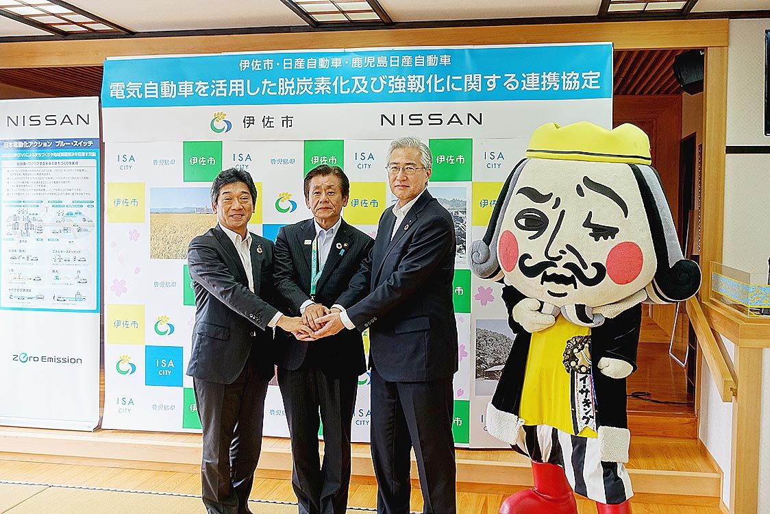 【鹿児島】日産自動車と鹿児島日産(石原一智社長)と伊佐市の3者は、脱炭素社会の実現や災害対策の強化を目指し、「電気自動車を活用した脱炭素化及び強靭化に関する連携協定」を締結した。県内でこうした協定を締結するのは4自治体目。 協定ではEVの...