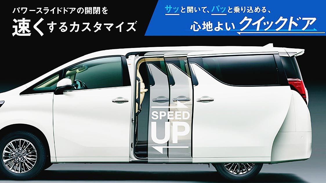アルファード/ヴェルファイアの電動スライドドアの開閉速度の変更は、ソフトウェアの更新で実現する。対象は2015年に発売した先代モデル。開閉速度を従来比で20%速め、雨の日の乗降時などの使い勝手を高める。施工対応エリアは東京や大阪など7都府県。国内と同時に、台湾でも提供する。施工費は1万9800円。