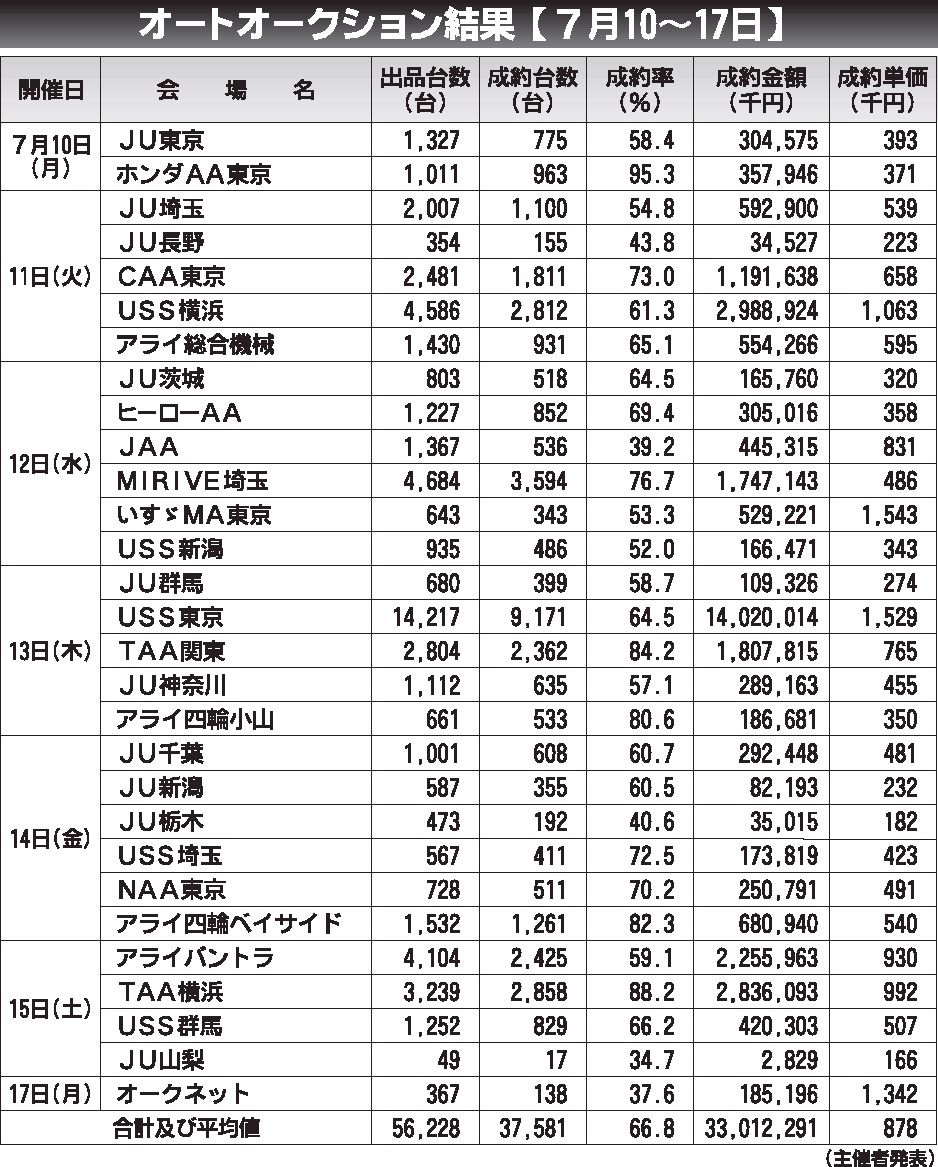 〈オートオークション結果〉首都圏 2023/7/10~17