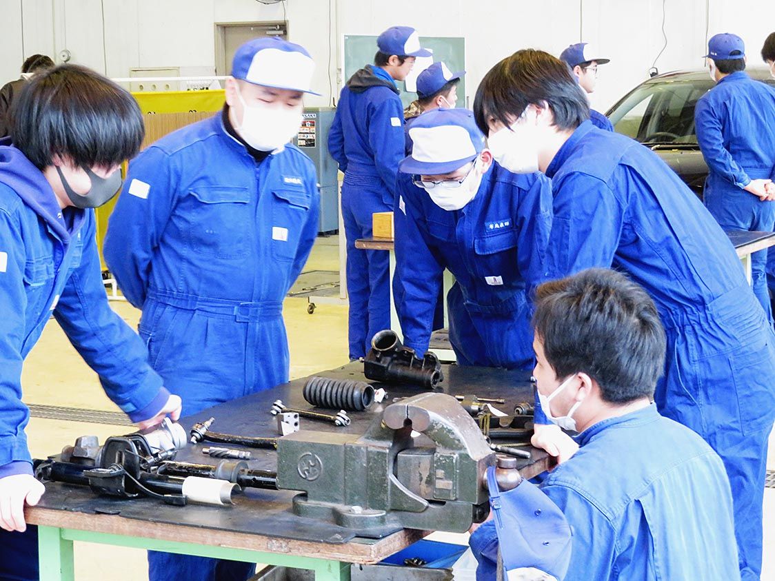 ―学校の特色と教育に対する基本方針は 「自動車科は定員25人で、授業時間は2年間で2800時間以上を確保している、卒業後の現場を想定して実習を重視し、数人で1台の教材車を扱うなど、少人数グループ制を取り入れ、きめ細かな指導を行うとともに、...