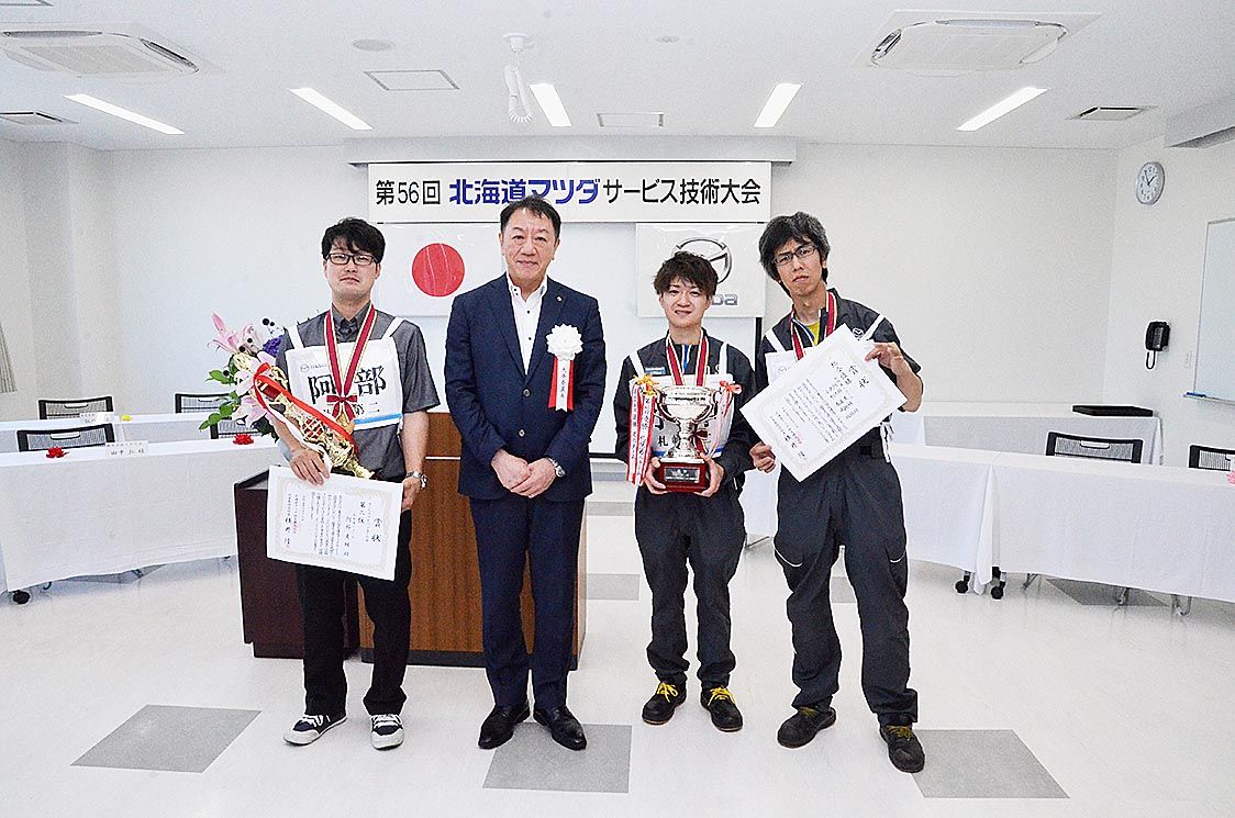 北海道マツダ(横井隆社長)は、「第56回サービス技術大会」を開催した。道内各地から選出されたアドバイザーとエンジニア計15人が出場。阿部友舗アドバイザー(西町店)、矢沢直樹エンジニア(琴似店)、小甲泰成エンジニア(小樽店)による「札幌第二...