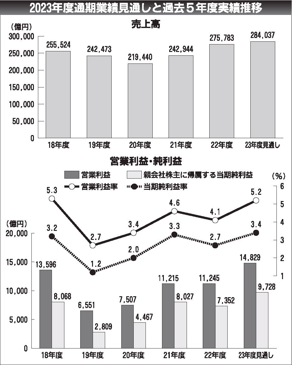 日本自動車部品工業会(部工会、有馬浩二会長)がまとめた「自動車部品工業の経営動向(2022年度通期)」によると、部品各社の23年度通期業績はコロナ禍前の18年度水準まで戻る見通しだ。完成車メーカーによる車両生産の正常化や価格転嫁の促進など...