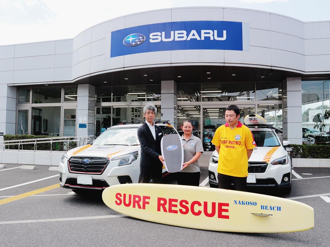 【福島】福島スバル(三井高春社長)は福島県ライフセービング協会(中本恵子代表)に「スバルライフセーバーカ―」を貸与した。同社いわき店で貸与式を開催し、三井社長からマスコットキーを手渡した=写真。取り組みを通じて協会の掲げる「水辺の事故ゼロ...